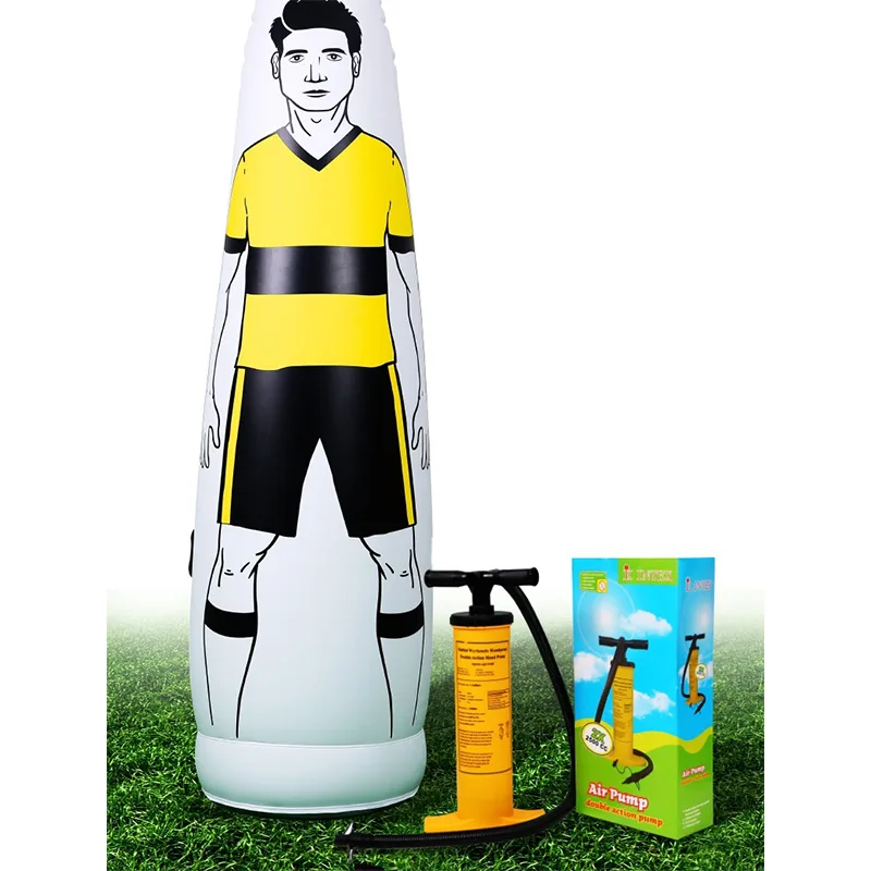 Manequim inflável de futebol com bomba incluída produzido pelo fabricante JINLANGTE Sports é um conjunto completo de equipamentos auxiliares de treinamento de futebol, especialmente projetados para a prática de futebol em diferentes cenários. Quer se trate de ensino de futebol escolar, treinamento intensivo em campos de treinamento juvenil, prática de campo em família ou treinamento diário do clube, ele pode ser facilmente adaptado.